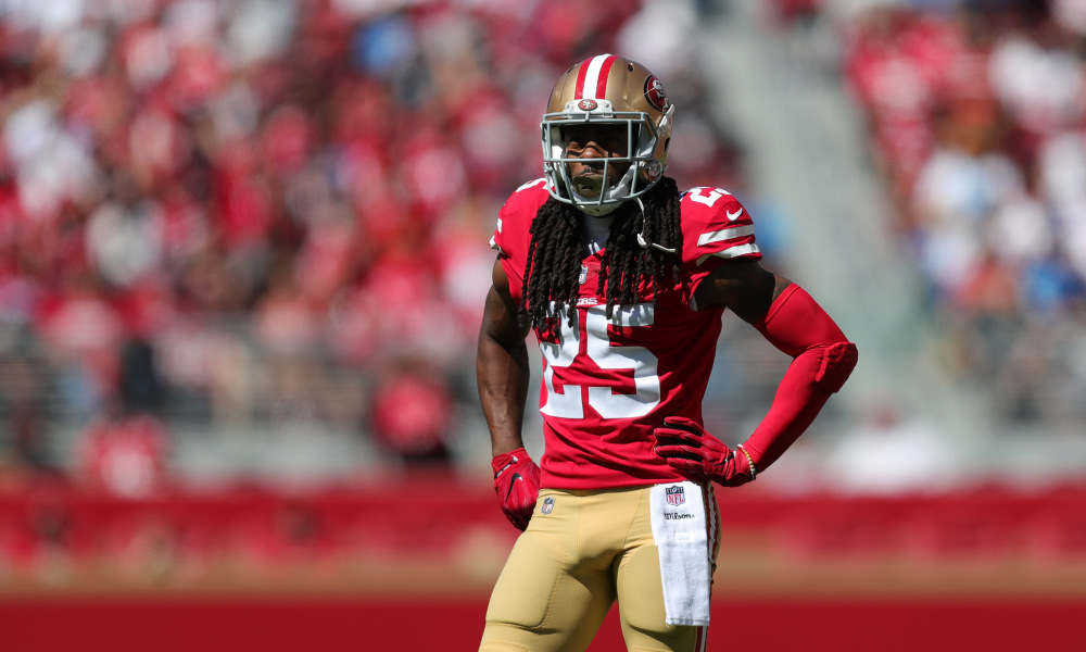 Sep 16, 2018; Santa Clara, CA, USA; San Francisco 49ers defensive back Richard Sherman (25) during the game against the Detroit Lions at Levi’s Stadium. Mandatory Credit: Sergio Estrada-USA TODAY Sports
